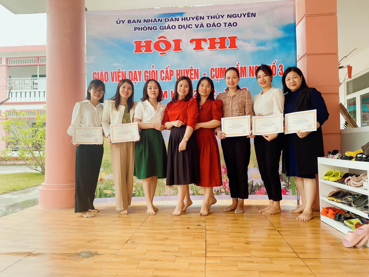 Nằm trong chuỗi hoạt động chuyên môn của nhà trường năm học 2022-2023 . Trường mầm non Mỹ Đồng có 5 đồng chí giáo viên dự thi giáo viên dạy giỏi cấp huyện năm học 2022-2023 . Trải qua 2 phần thi thực hành và lý thuyết các đồng chí đã nỗ lực , không ngừng phấn đấu để thể hiện những kiến thức, kỹ năng , tài năng trong việc giảng dạy đối với giáo viên mầm non. Kết quả 5/5 đồng chí đều hoàn thành xuất sắc phần thi của mình và được công nhận là Giáo viên dạy giỏi cấp huyện năm học 2022-2023. Một lần nữa xin được chúc mừng các đồng chí. Chúc các đồng chí tiếp tục nâng cao hơn nữa khả năng của mình trong những năm học tiếp.